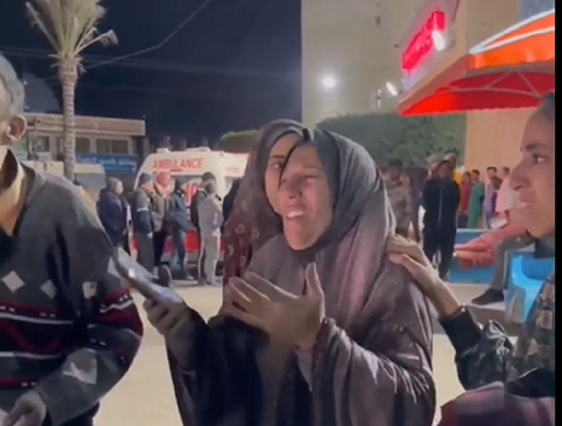 وقفت الأم في باحات أحد المستشفيات المأهولة بالنازحين تبكي أطفالها الذين استشهدوا وهم جائعين، قائلة وهي تصرخ وتبكي " 5 أطفال استشهدوا وهم جائعين.. أه يا ولادي يا فلذة كبدي يا ما".
