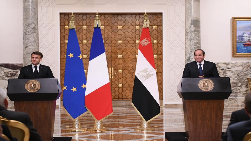 السيسي وماكرون يؤكدان ضرورة عودة اتفاق غزة ورفض التهجير