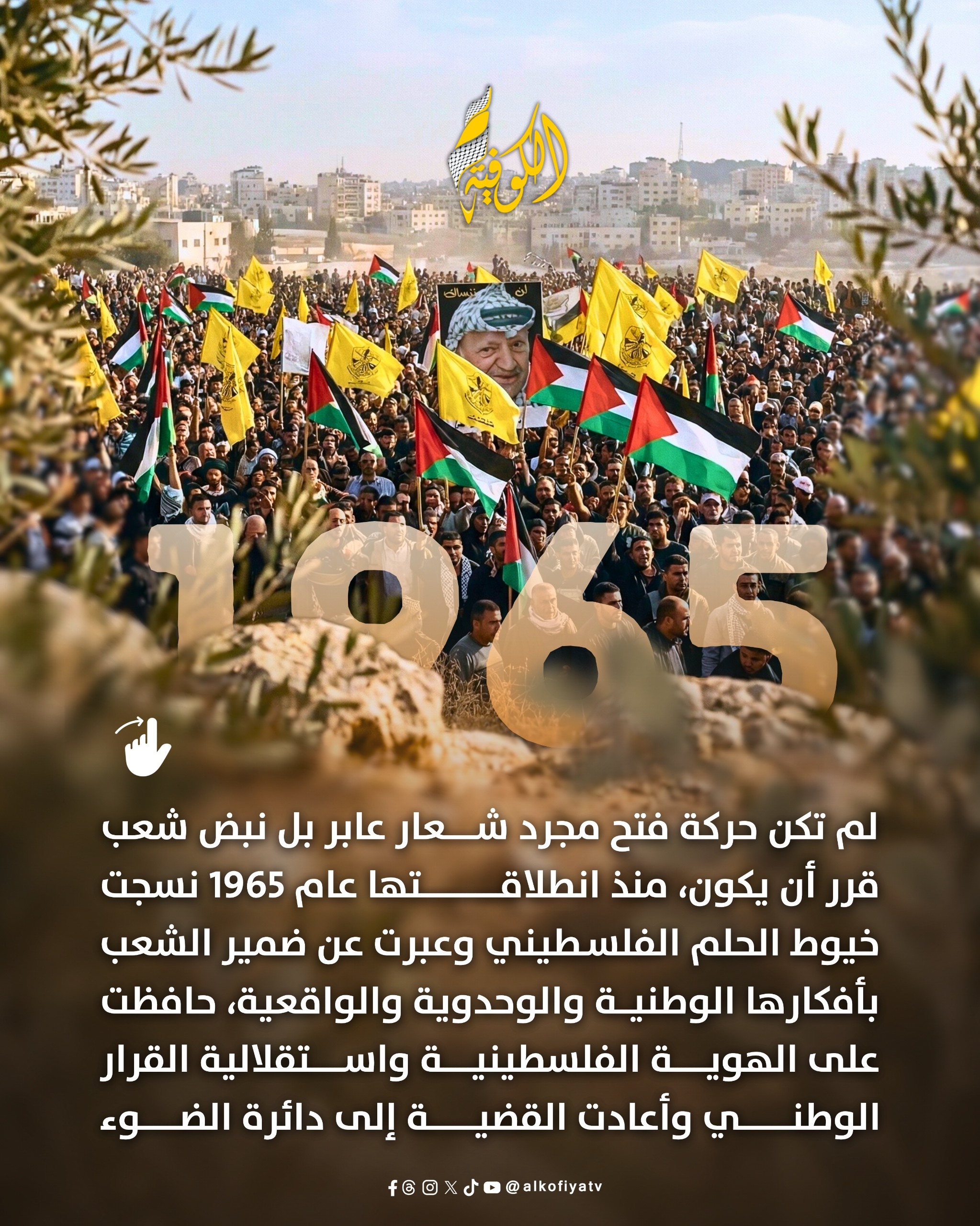 لم تكن حركة "فتح" مجرد شعار عابر، بل كانت نبض شعب قرر أن يكون، منذ انطلاقتها في 1965 نسجت خيوط الحلم الفلسطيني، وعبرت عن ضمير الشعب بأفكارها الوطنية والوحدوية والواقعية، وحافظت على الهوية الفلسطينية واستقلالية القرار الوطني، وأعادت القضية الفلسطينية إلى دائرة الضوء.