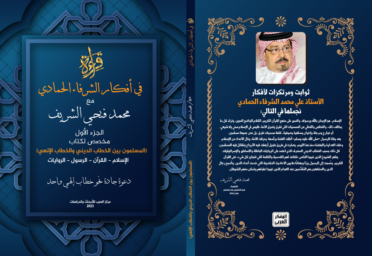تأتي أولى الثمار الفكرية والثقافية الناضجة في شكل كتاب (قراءة تحليلية في أفكار الشرفاء الحمادي التنويرية)، والذي يصدر عن دار المفكر العربي للنشر بالتعاون مع مركز العرب، والذي يتناول عرض وتحليل أبرز ما جاء في كتاب (المسلمون بين الخطاب الديني والخطاب الإلهي) للكاتب والمفكر العربي الكبير علي محمد الشرفاء الحمادي، مدير ديوان رئيس دولة الإمارات السابق، وأحد تلاميذ حكيم العرب، المغفور له الشيخ زايد بن سلطان آل نهيان.