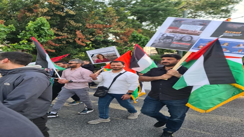وكانت هتافات أبناء الجالية الفلسطينية أيضا كلها تصميم وتمسك بحقهم في العودة إلى وطنهم المسلوب، مؤكدين أن الحقوق لا تسقط بالتقادم، وأن ذاكرة شعبهم وأجيالهم حية ولن تنسى ولن تتنازل مهما طال الزمان وبلغت التضحيات.