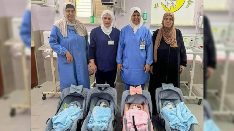 غزة: أنجبت زوجة الأسيرأحمد الشمالي من مدينة غزة اليوم الاثنين بـ 4 توائم، حملت بهم عن طريق "نطف مهربة، من زوجها في سجون الاحتلال.