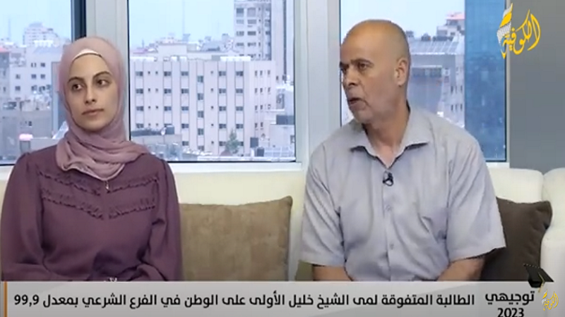 غزة: حصلت الطالبة المتفوقة لمى الشيخ خليل، على المرتبة الأولى على الوطن في الفرع الشرعي بمعدل 99,9%.
