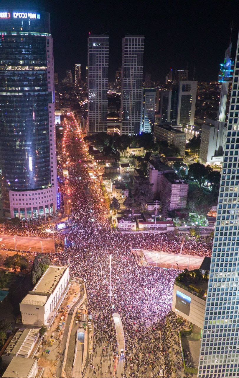 وقال منظمو الاحتجاجات، في بيان قبيل انطلاق التظاهرات، إن "إسرائيل تتدهور إلى ديكتاتورية، ليس فقط في التشريع ولكن أيضًا في السلوك الاستبدادي لرئيس الوزراء".