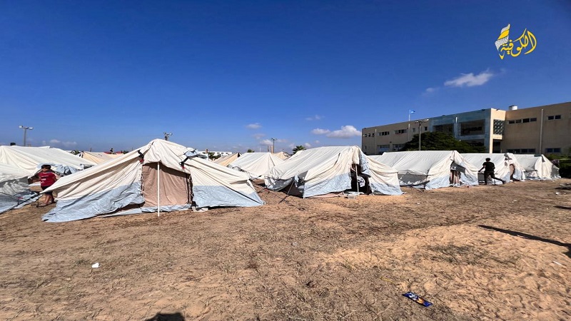 صور|| "أونروا" تقيم أول مخيم للنازحين في مدينة خان يونس جنوب قطاع غزة.