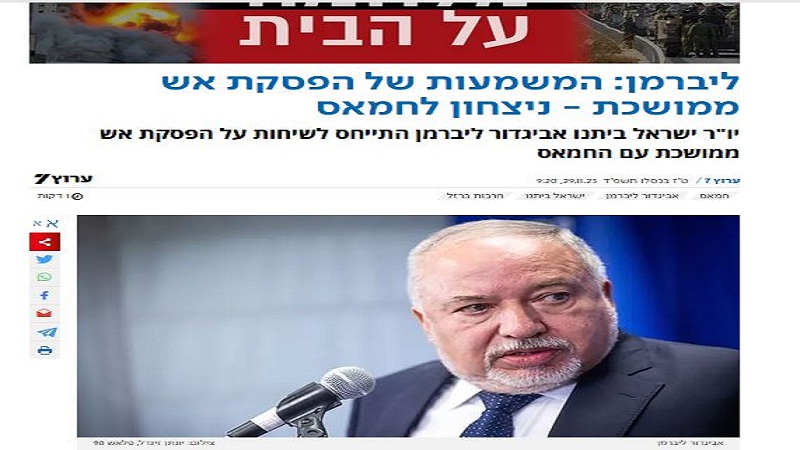 وكتب ليبرمان، "يجب على الحكومة الإسرائيلية ألا توافق تحت أي ظرف من الظروف على وقف طويل الأمد لإطلاق النار ضد حماس دون تحقيق أهداف الحرب"، بحسب ما نقلته القناة السابعة العبرية.