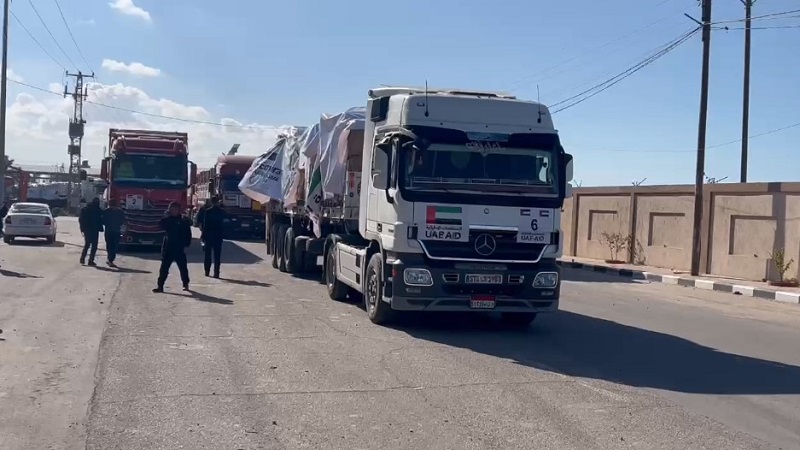 كاميرا "الكوفية" ترصد وصول قافلة مساعدات إنسانية إماراتية إلى قطاع غزة