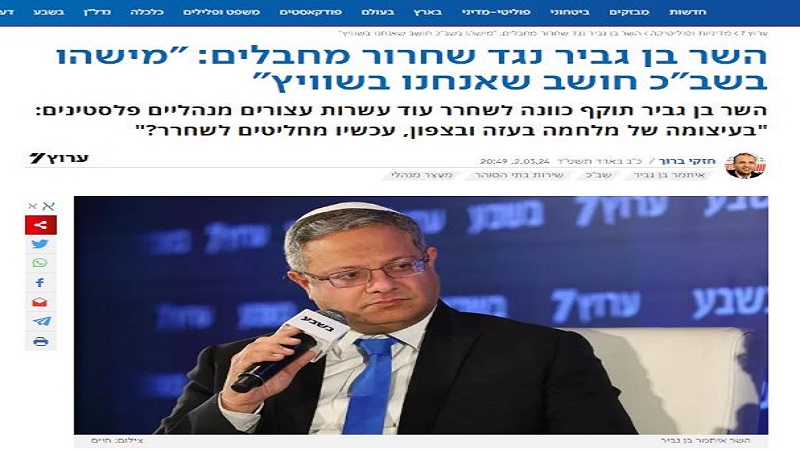 القناة السابعة العبرية: الوزير "بن غفير" ضد إطلاق سراح الأسرى الفلسطينيين