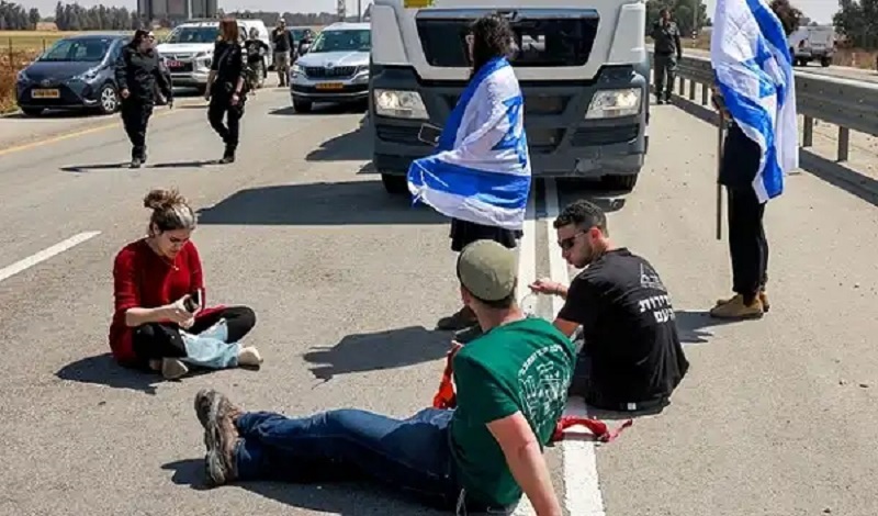 وذكرت وسائل إعلام الاحتلال، أن بين المتظاهرين وفد حاخامات من الولايات المتحدة، الذين جاؤوا حاملين مواد غذائية لسكان قطاع غزة.