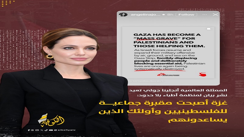 متابعات: أعادت الممثلة الأمريكية أنجلينا جولي، اليوم الأحد، نشر منشور لمنظمة "أطباء بلا حدود" عبر خاصية "الستوري" على حسابها في تطبيق إنستغرام، في إطار تجديد دعمها لقطاع غزة في مواجهة حرب الإبادة الإسرائيلية.