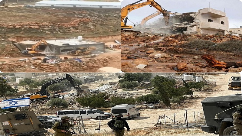 الاحتلال يهدم قرية الضبع بمسافر يطا ومنزلين برام الله وقلقيلية ومنشآت في الأغوار