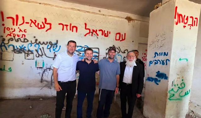 وظهر سموتريتش في صورة التقطت بمبنى مهجور وإلى جانبه كتابات عنصرية خطت على جدرانه من بينها “الموت للعرب”، و”شعب إسرائيل عائد إلى سانور”. فيما قام المجلس الاستيطاني “شومرون” بنشر الصورة مع “الموت للعرب”، قبل أن يقوم لاحقا بتعديلها من دون العبارة العنصرية.
