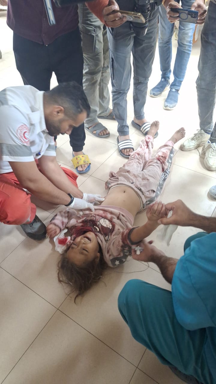 مصابون جراء قصف طائرات الاحتلال خيام النازحين في محيط مستشفى الرنتيسي غربي مدينة غزة