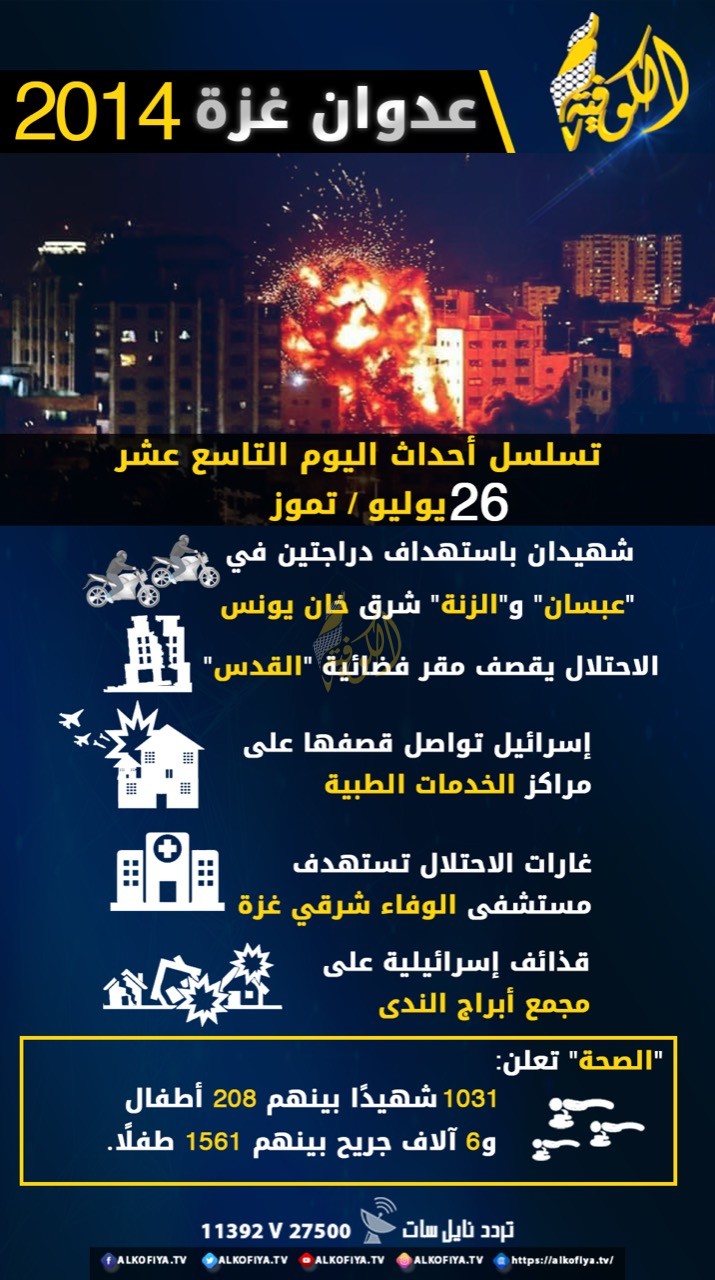عدوان غزة 2014.. تسلسل أحداث اليوم التاسع عشر