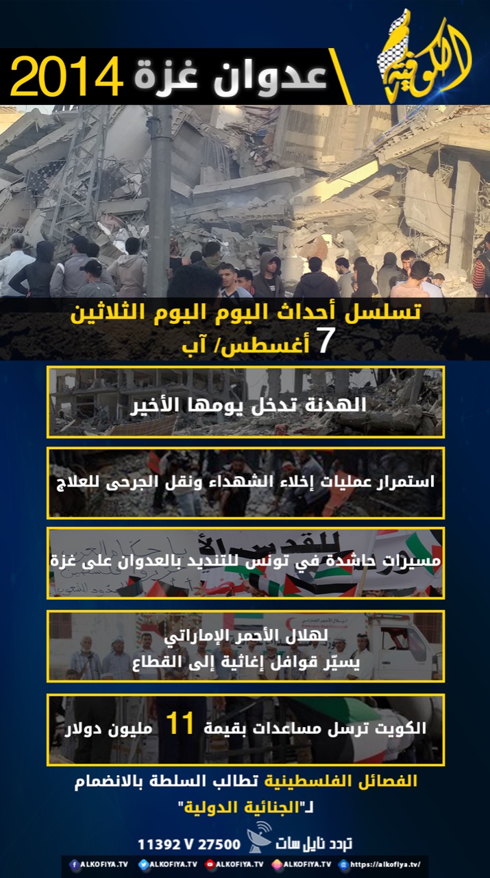 عدوان غزة 2014.. تسلسل أحداث اليوم الثلاثين