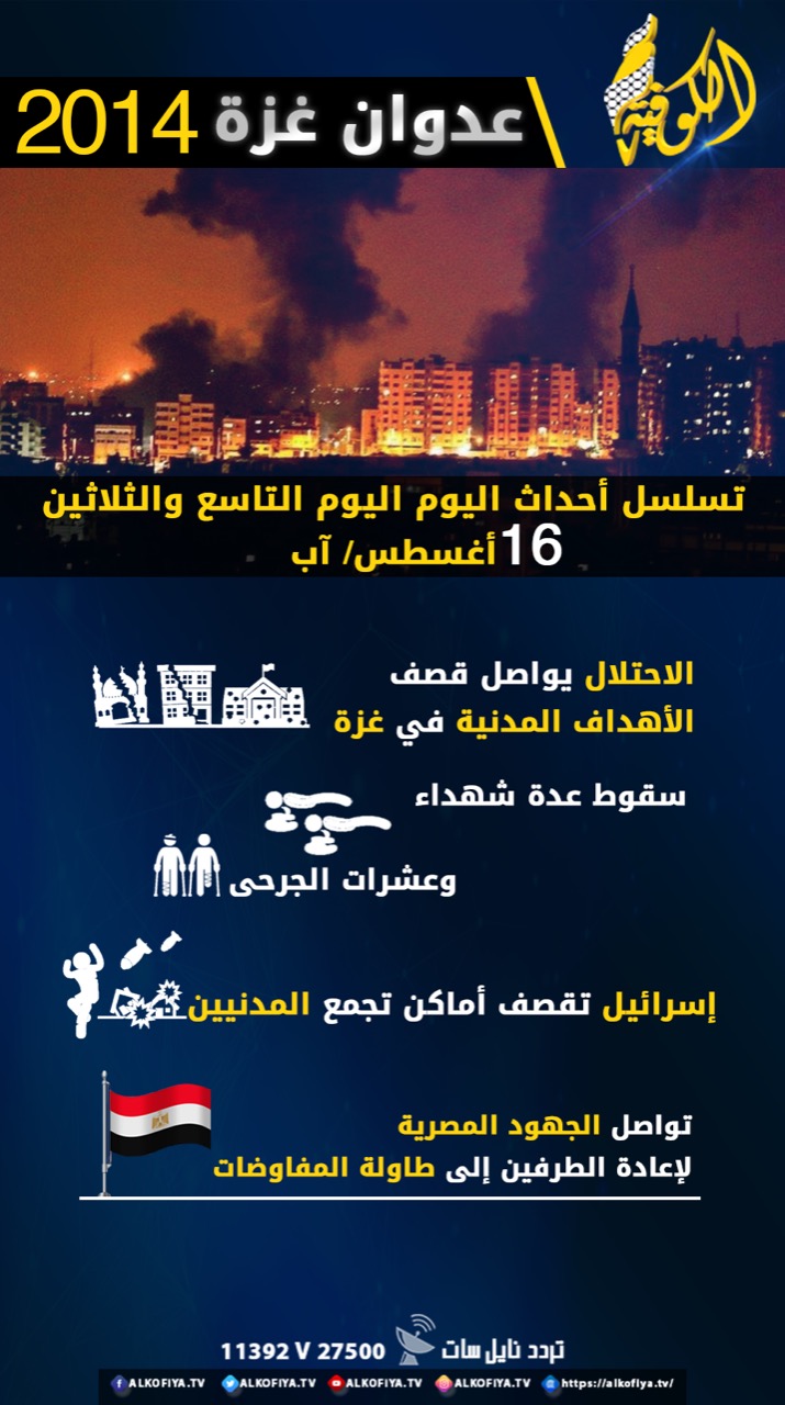عدوان غزة 2014.. تسلسل أحداث اليوم التاسع والثلاثين