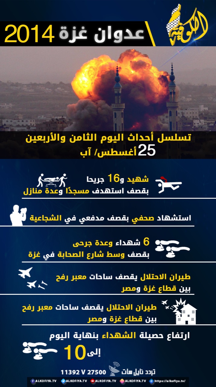 عدوان غزة 2014.. تسلسل أحداث اليوم الثامن والأربعين