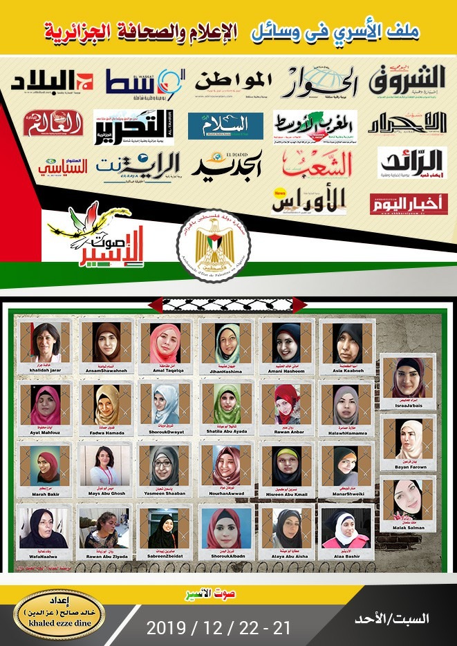 الجزائر: أبرزت الصحف الجزائرية خبر احتجاز جثامين الأسرى في سجون الاحتلال، ومعانات الأسيرات داخل أقبية السجون، من خلال ملف "صوت الأسير" والذي جاءت أبرز عناوينه على النحو التالي: