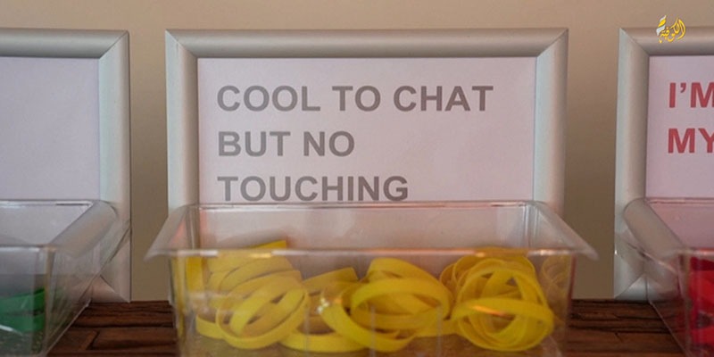 في مبنى كرييت ميديا جروب، بإمارة دبي، لم يعد الموظفون يشعرون بالحرج، بعد أن خصصت الشركة ثلاثة أنواع من الأساور يرتديها الموظفون في معاصمهم، ذات اللون الأخضر تشير إلى استعداد مرتديها للمصافحة، بينما تشير الإسورة الصفراء إلى الاستعداد للحديث دون ملامسة، وتعني الإسورة ذات اللون الأحمر أن الموظف يريد الاحتفاظ بمسافة بينه وبين الآخرين.