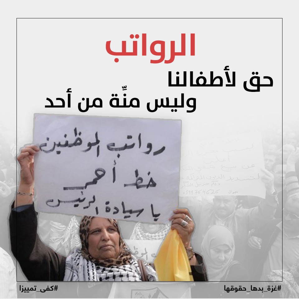خاص بالصور|| "كفى تمييزا".. حملة إلكترونية تطالب بالمساوة بين موظفي غزة والضفة