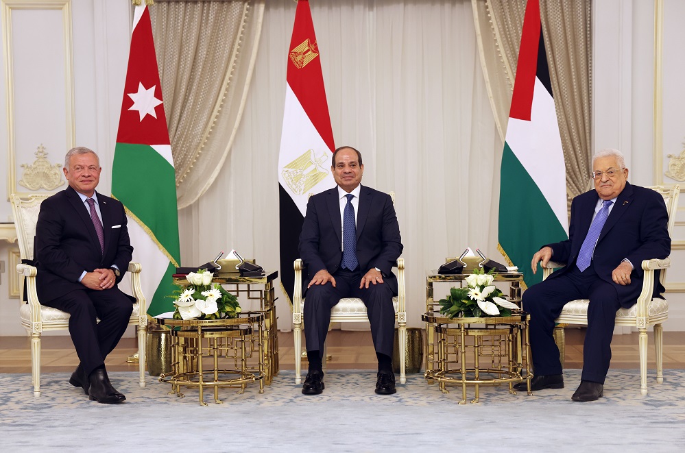 عقد رئيس دولة فلسطين محمود عباس، ورئيس جمهورية مصر العربية عبد الفتاح السيسي، والعاهل الأردني الملك عبد الله الثاني، اليوم الإثنين، قمة ثلاثة في مدينة العلمين الجديدة في مصر.