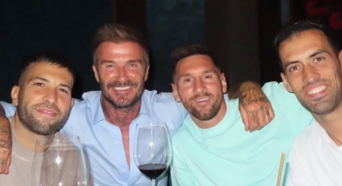 ووفق الصحيفة البريطانية، فإن ميسي كان يحتفل وزوجته بالفوز على نادي شارلوت برباعية نظيفة، مع مالك نادي إنتر ميامي بالشراكة النجم الإنجليزي ديفيد بيكهام وزوجته فكتوريا في المطعم رفقة سيرجيو بوسكيتس وزوجته إيلينا وجوردي ألبا القادمين من برشلونة خلال "الميركاتو" الصيفي الجاري 2023.