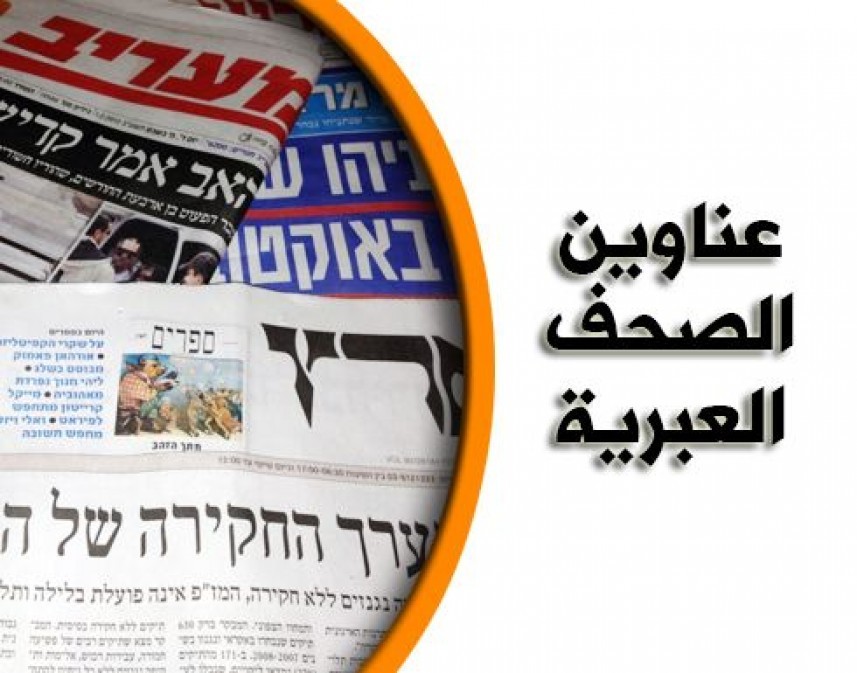 فيما يلي أبرز عناوين الصحف الإسرائيلية (يديعوت أحرنوت، ومعاريف، وهآرتس)، الصادرة اليوم الأربعاء.