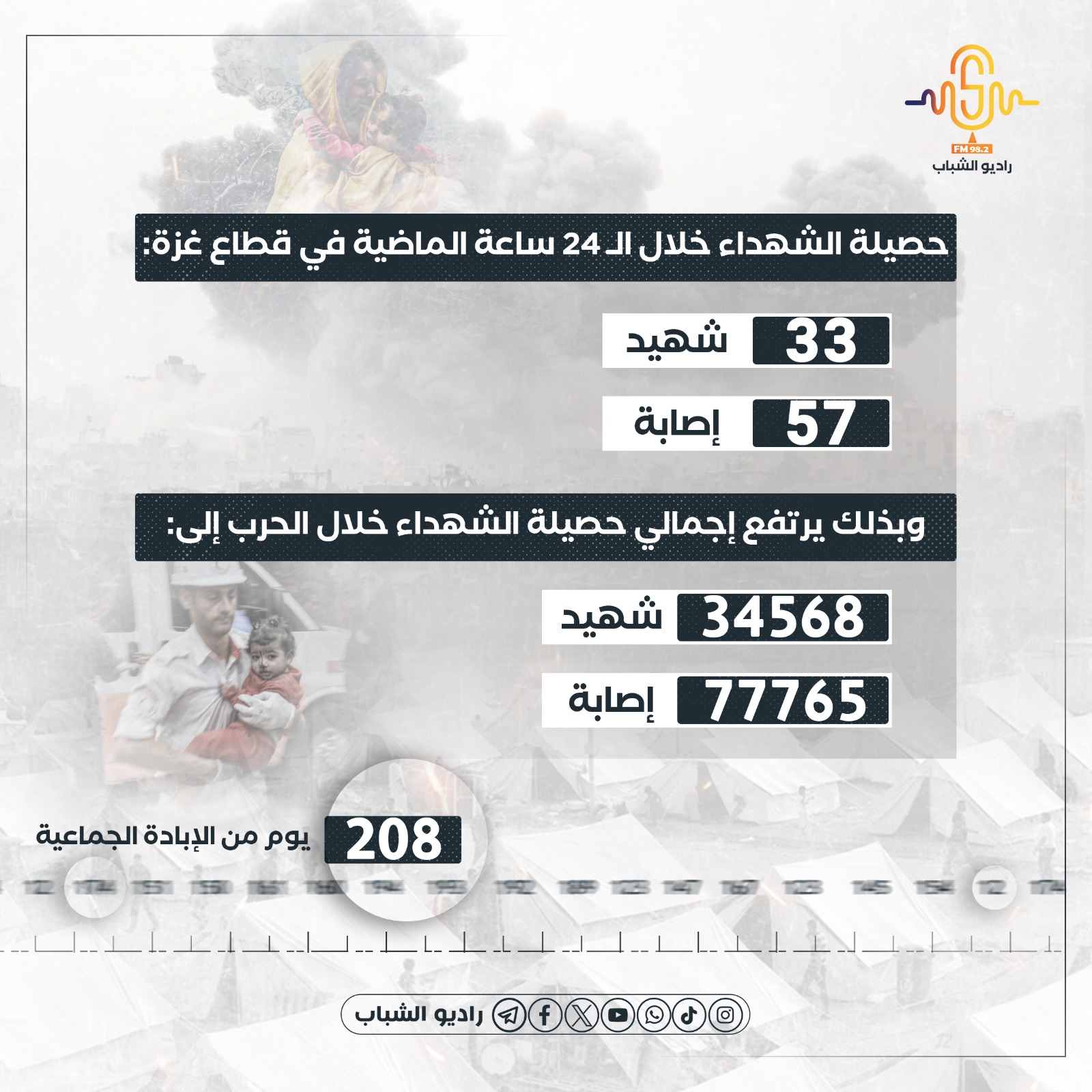 33 شهيدًا و57 مصابًا وصلوا مستشفيات غزة خلال الـ24 ساعة الماضية